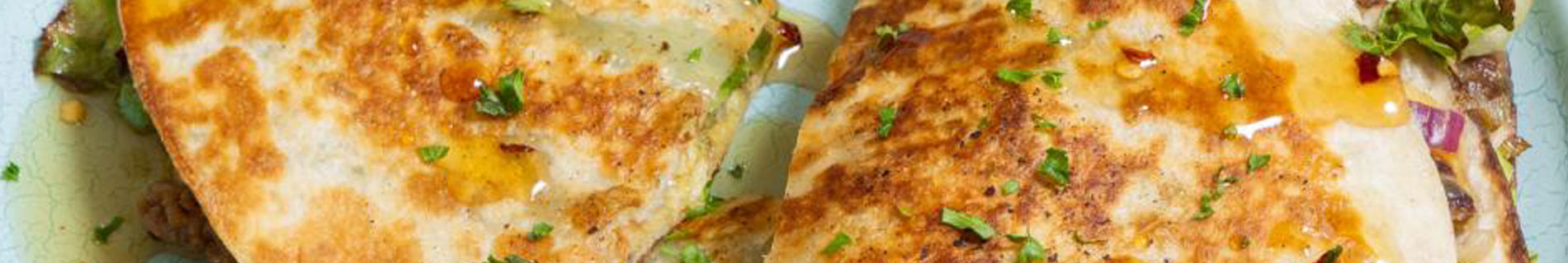 Return the frying pan to medium heat (wipe with a little oil if needed). Toast the quesadillas one at a time for 2–3 minutes each side, pressing gently, until golden and the cheese has melted.